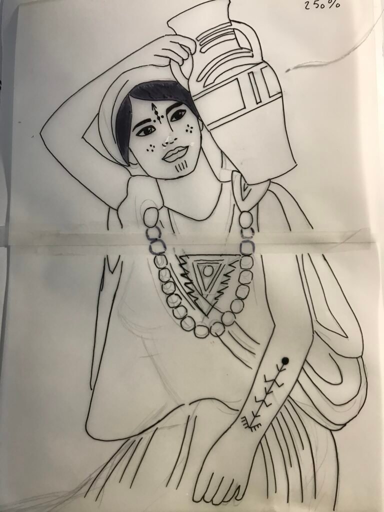 Tout est possible à condition que les demandes du client soient clairement définies. Par exemple, pour un projet représentant le désert du Sahara, la fresque peut intégrer des dunes, des nuances chaudes et, comme détail central, une porteuse d’eau berbère, symbole de culture, de force et de tradition. Chaque fresque devient ainsi une œuvre sur mesure, porteuse de sens et d’émotion.